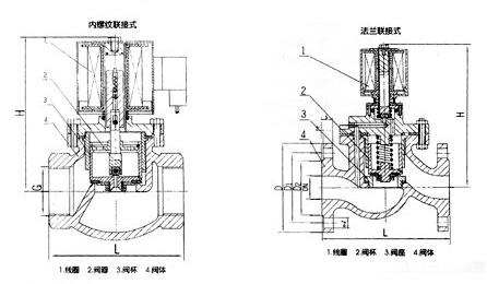 常開電磁閥,線圈通電后,銜鐵在磁力作用下下移,推動副閥閥塞下移,直到和副閥座壓緊,副閥關(guān)閉,由于主閥閥杯上下壓差趨于相等,主閥閥杯由磁力和自重壓緊緊密封面,閥門關(guān)閉。線圈斷電,磁力為零,銜鐵和副閥閥塞由彈簧作用上升,副閥打開,主閥閥杯內(nèi)介質(zhì)經(jīng)副閥流走,壓力下降,主閥閥杯由下下壓差作用向上升起,主閥打開,閥門開啟。